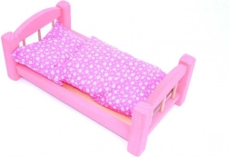 This elegant wooden doll cradle in a soft pink tone is made from locally sourced woods and produced exclusively in the Czech Republic. Thanks to quality handcrafting, it is stable, durable, and pleasant to the touch. The package also includes beautiful bedding – the pattern may vary by production series (teddy bears, ladybugs, soft pink, white).