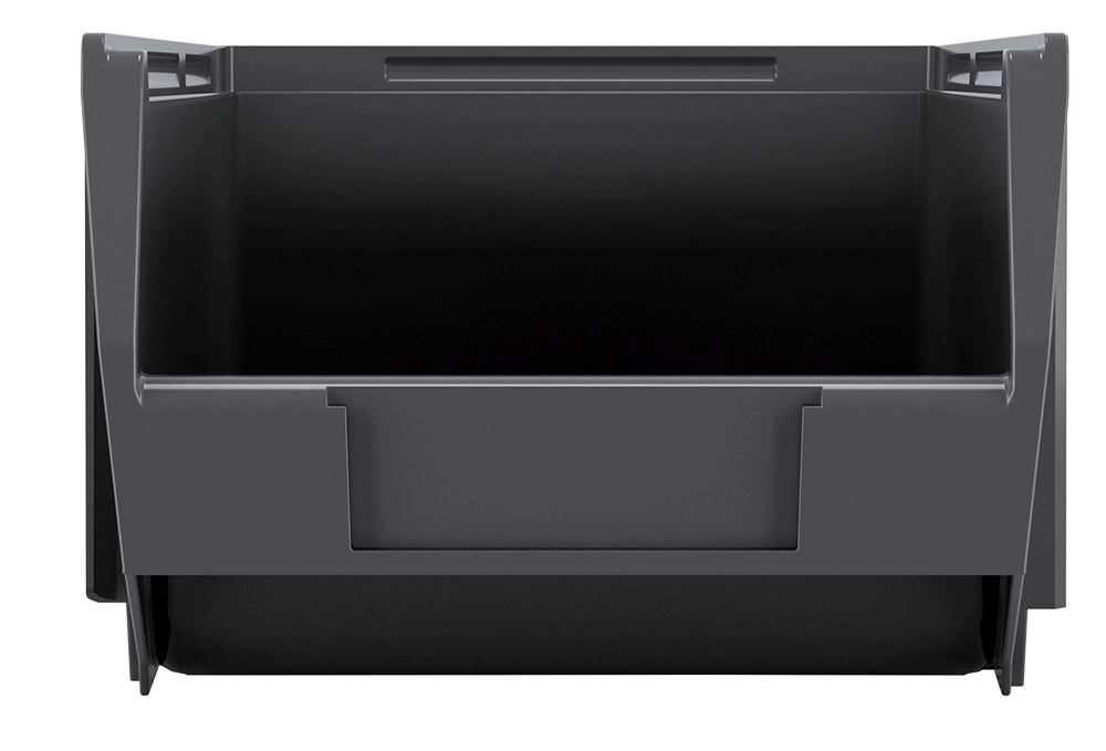 The slanted open front provides a clear view of the contents and easy removal of small parts even when stacked.