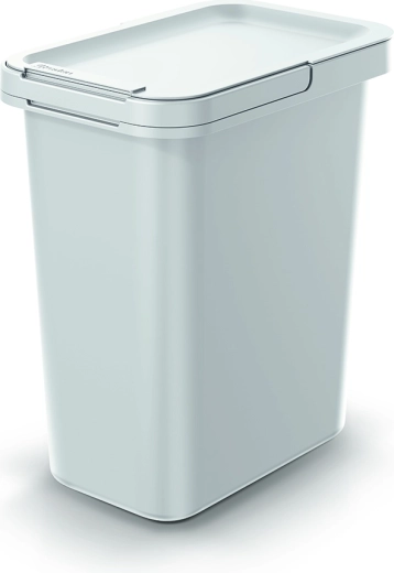 A practical 12-liter trash can in ash gray, ideal for the kitchen, bathroom, and office. Thanks to its compact dimensions, it fits even into smaller spaces and offers a durable plastic body, a hygienic swing lid, and an inner frame for secure bag attachment.