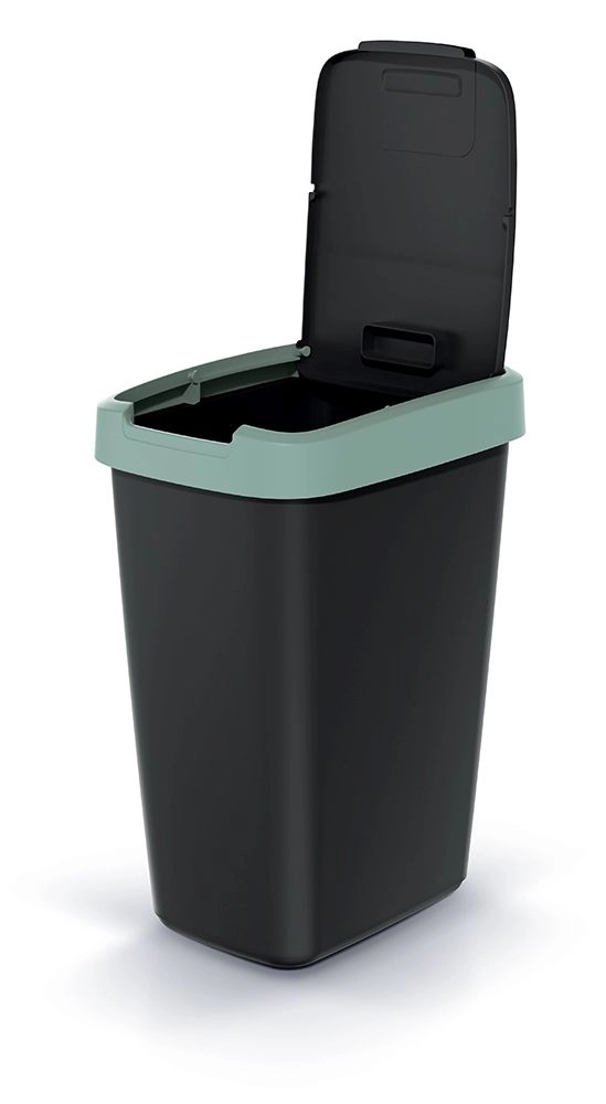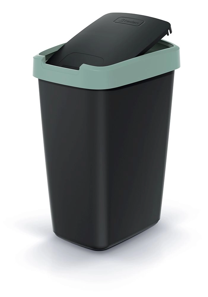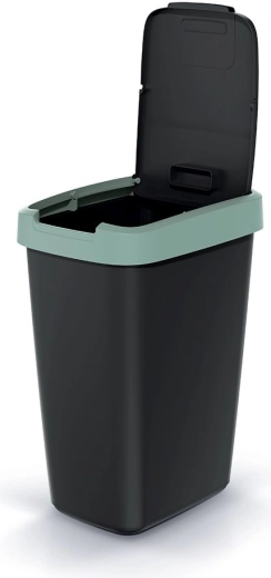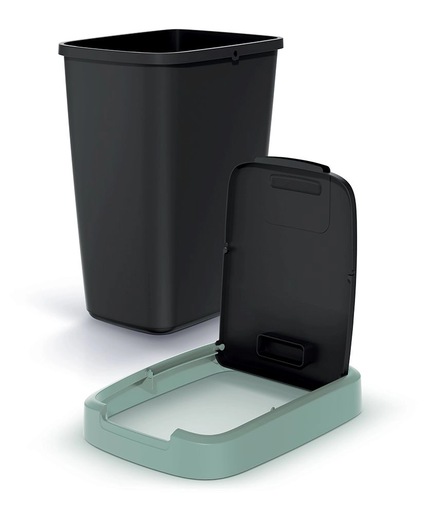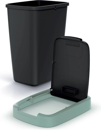 Durable plastic with a matte finish is easy to clean, and the elegant black–mint color scheme suits modern interiors. Thanks to its rectangular, slightly tapered shape, the bin saves space and stays stable even in narrower areas.