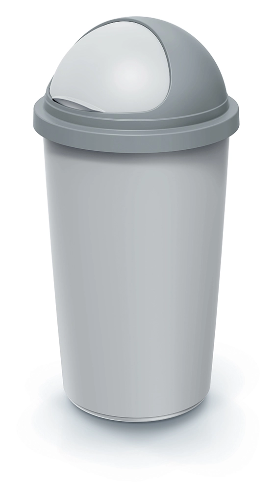 A practical 60 L trash can in elegant ash gray with a light gray lid, ideal for households, offices, and small facilities. Features durable plastic, easy cleaning, and space-saving dimensions for efficient use of space.
