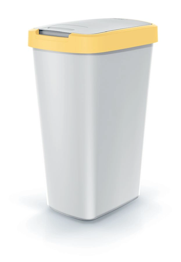 The Compacta Q Flap 45-liter trash can is a solution for everyday tidiness in the kitchen, office, and hallway. Its slender, space-saving shape lets you place it in narrower niches and corners, while the ash gray body and light yellow lid add a fresh, modern accent to the interior.