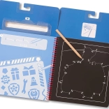 Includes a wooden stylus, stencils, and stickers. Children can trace shapes, build scenes, and develop fine motor skills.