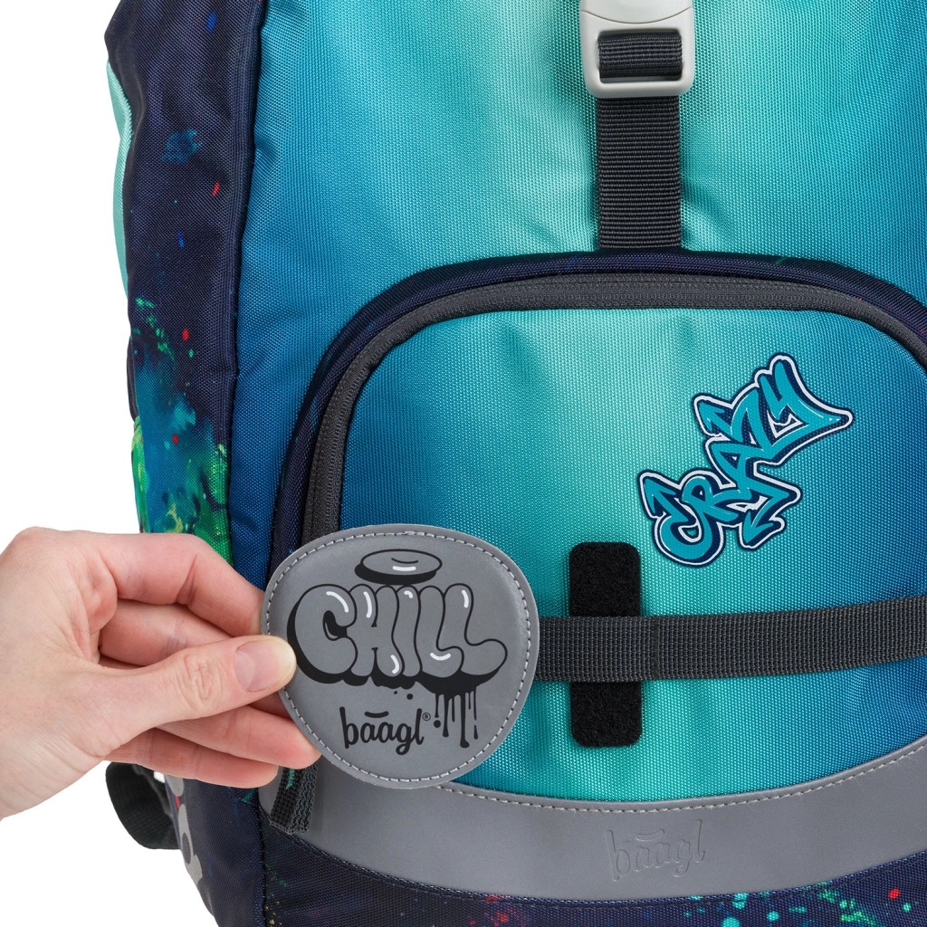 The set of 3 interchangeable BAAGL Baaglies badges lets kids express their personality and creativity. Installation with a hook-and-loop fastener takes just a moment—simply attach the badges and swap them anytime. An ideal accessory for BAAGL school briefcases and backpacks.