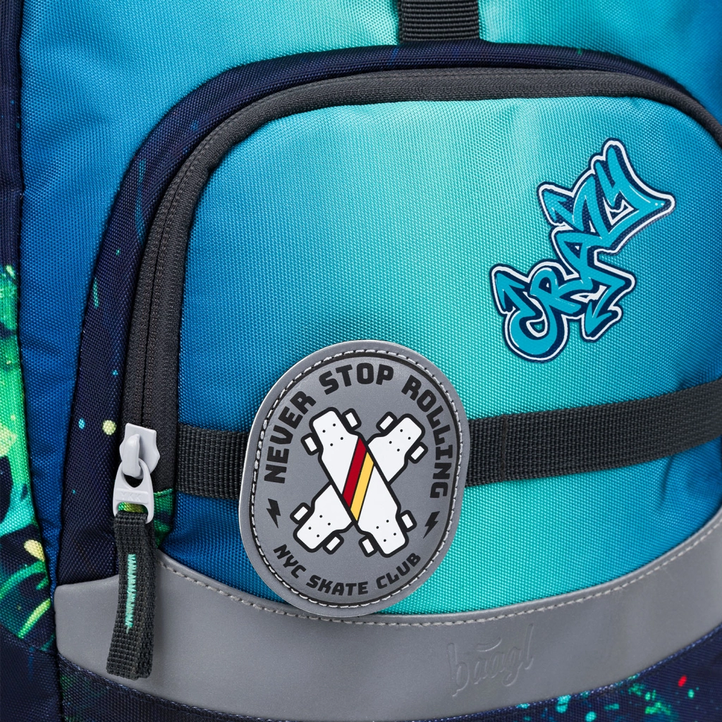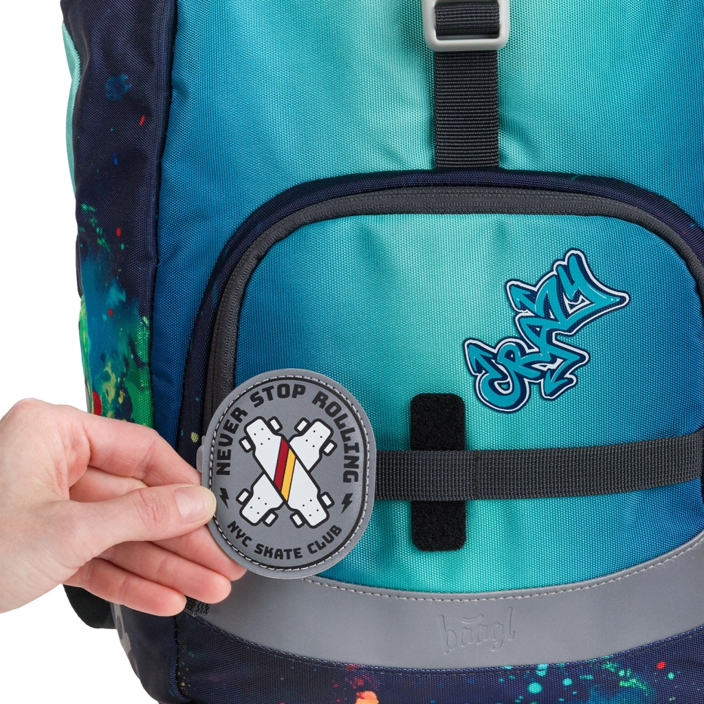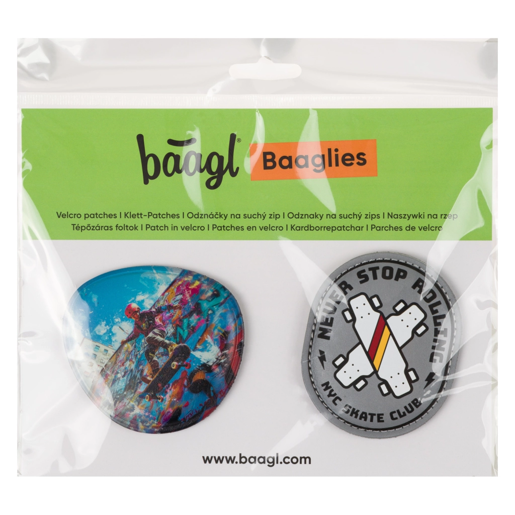 Bring a school satchel or backpack to life with stylish BAAGLIES badges in the Skate Park theme. Thanks to the easy Velcro attachment, you can swap them anytime to match your mood. A playful design, easy personalization, and more than 70 attractive themes ensure the backpack never gets boring for kids.