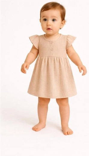Lightweight and airy muslin dress for babies from New Baby will delight every little fashionista. It has a comfortable A-line cut, short sleeves, and a gathered skirt. Practical front fastening makes dressing easier. Thanks to 100% cotton, the dress is soft, breathable, and gentle on sensitive skin. The OEKO-TEX STANDARD 100 certification ensures material safety.