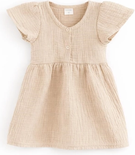 These New Baby muslin dresses in beige are a great choice for warm days. The light muslin weave lets the skin breathe, helping to prevent overheating. Thanks to the A-line cut and practical front fastening, the dress is easy to put on and offers freedom of movement.