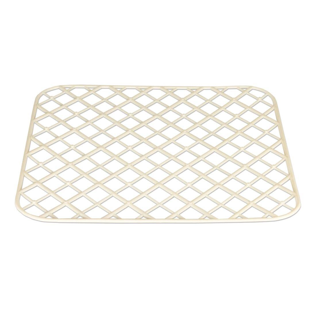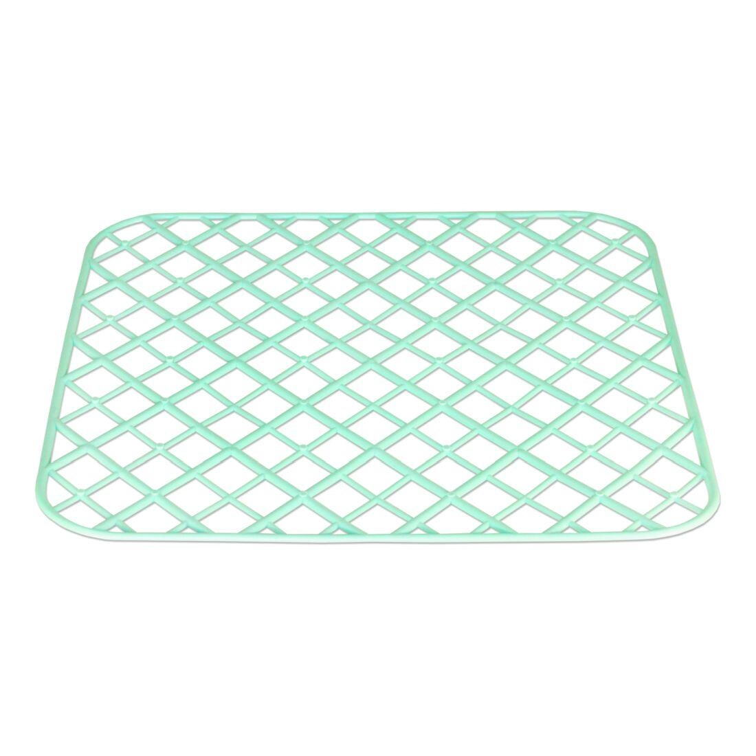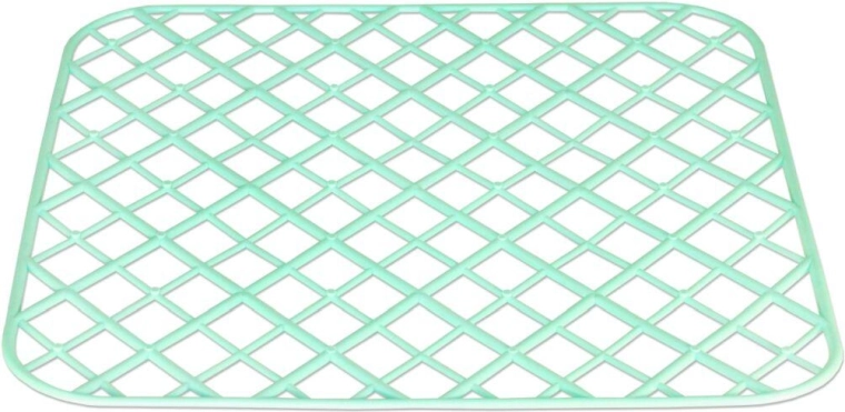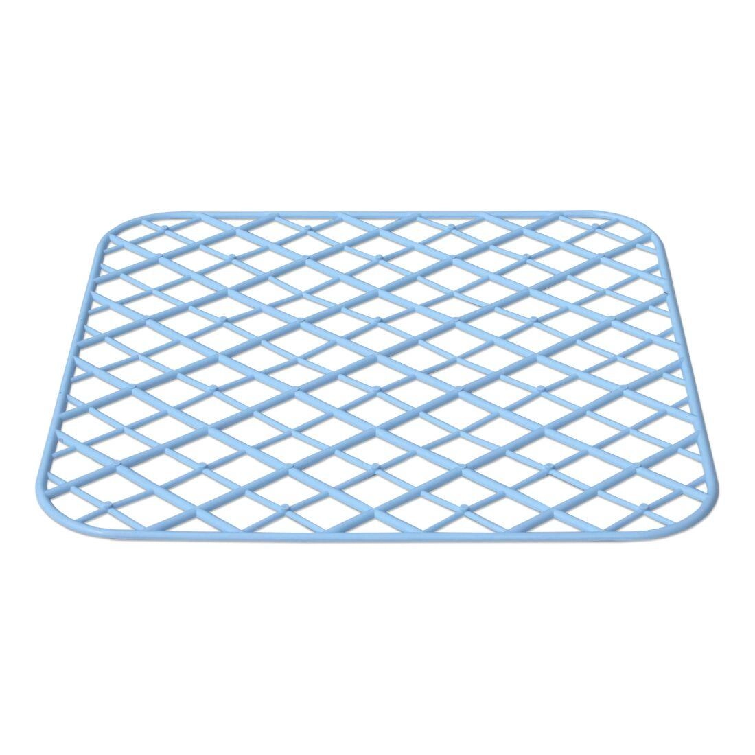 The open grid structure allows water to flow freely and speeds up drying of both dishes and the sink surface.