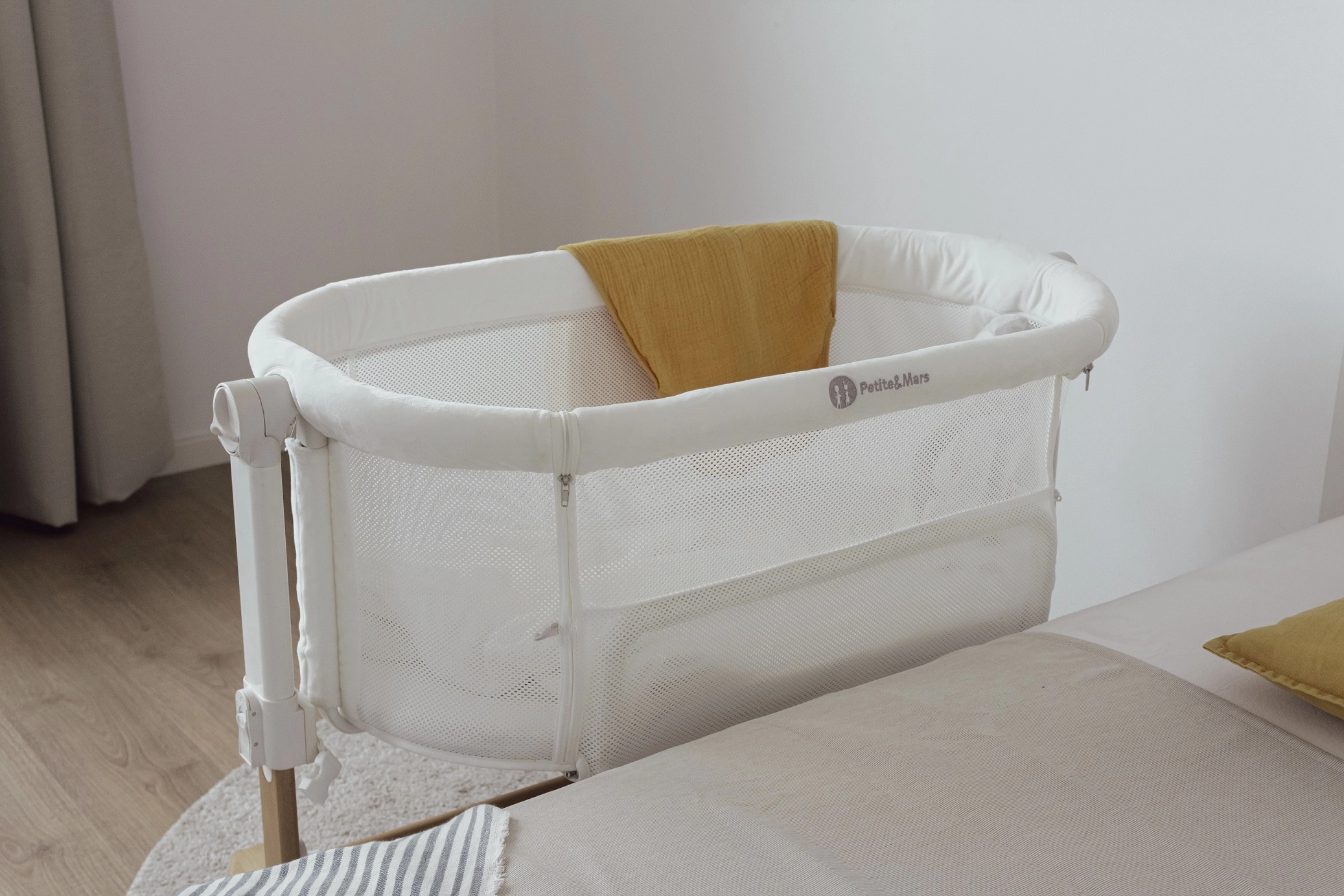 The removable side makes nighttime care and breastfeeding easier. The crib can be safely attached to the parents’ bed or used independently as needed.