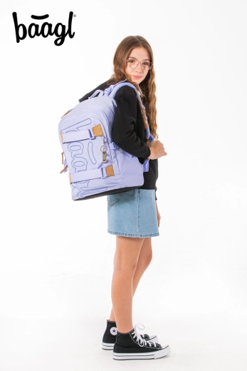 Baagl set 5 Skate Lilac: school backpack, pencil case, gym sack, waist bag and laptop sleeve