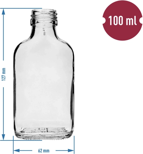 This glass bottle in the traditional hip-flask shape blends practicality and style. The durable clear glass lets you monitor the contents and looks elegant when serving. Thanks to its compact dimensions, it slips easily into a pocket, waist pack, or carry-on bag.
