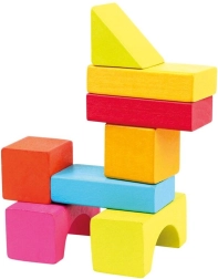 Playful Bucket full of colorful building blocks is ideal for creative children's fun. Supports shape recognition and develops fine motor skills thanks to the lid with shape openings.