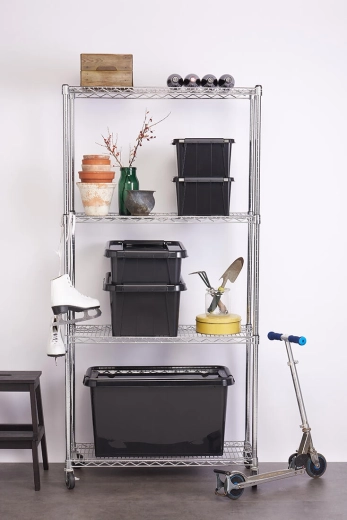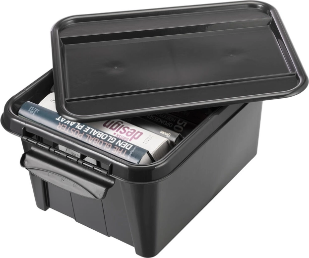 Keep things tidy with this durable storage box made of recycled polypropylene. With a 32-liter capacity and dimensions of 51 × 39 × 25.8 cm, it holds small to medium-sized items. The sturdy lid and 2 robust clips ensure secure closure and protect contents from dust.
