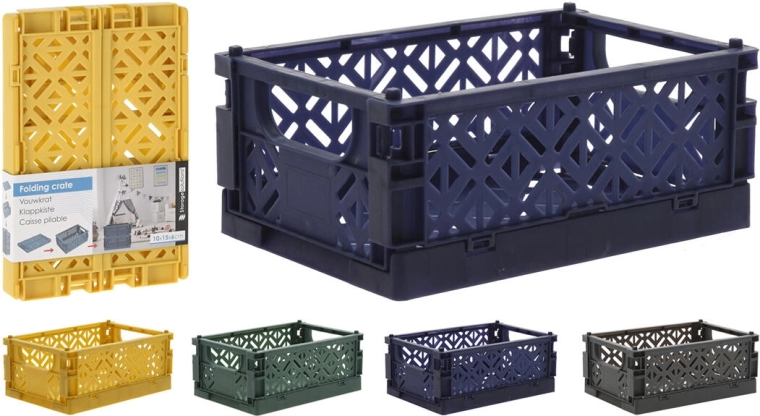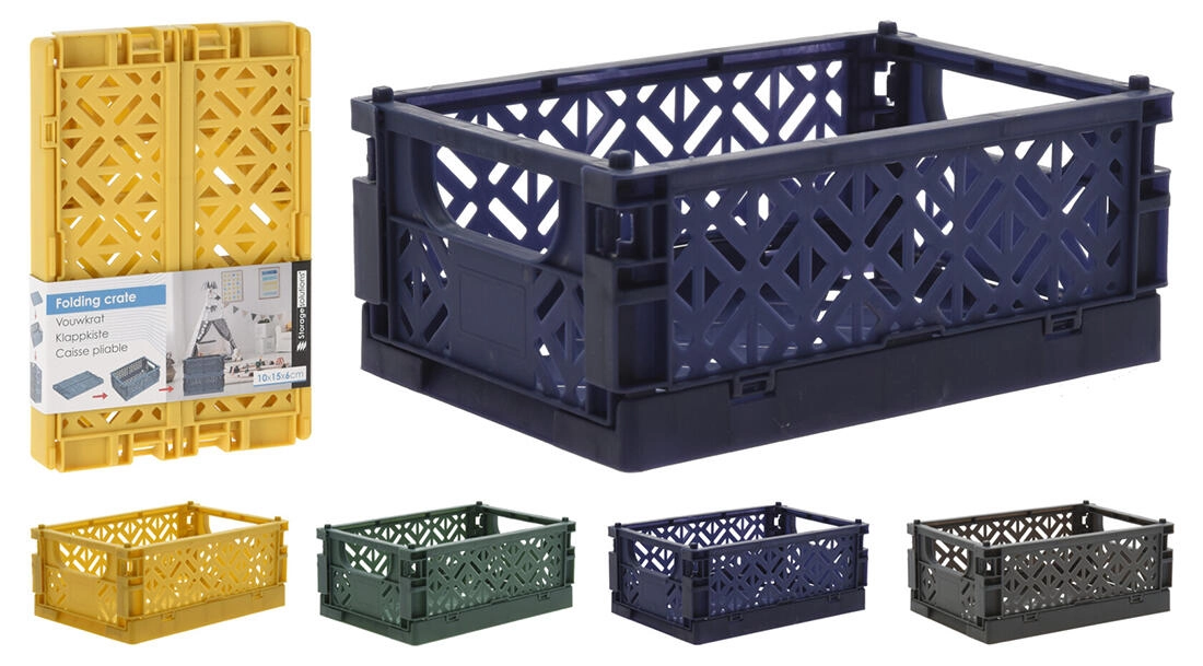 Folding plastic crate 10 × 15 × 6 cm – color mix
