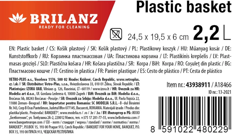 A practical plastic basket with a rattan look and a capacity of 2.2 l is perfect for organizing small items in the kitchen, bathroom, and office. Thanks to its compact dimensions of 24.5 × 19.5 × 6 cm, it fits on shelves and in drawers, and its durable plastic ensures a long service life. The elegant white color suits any interior.