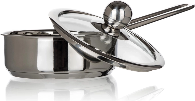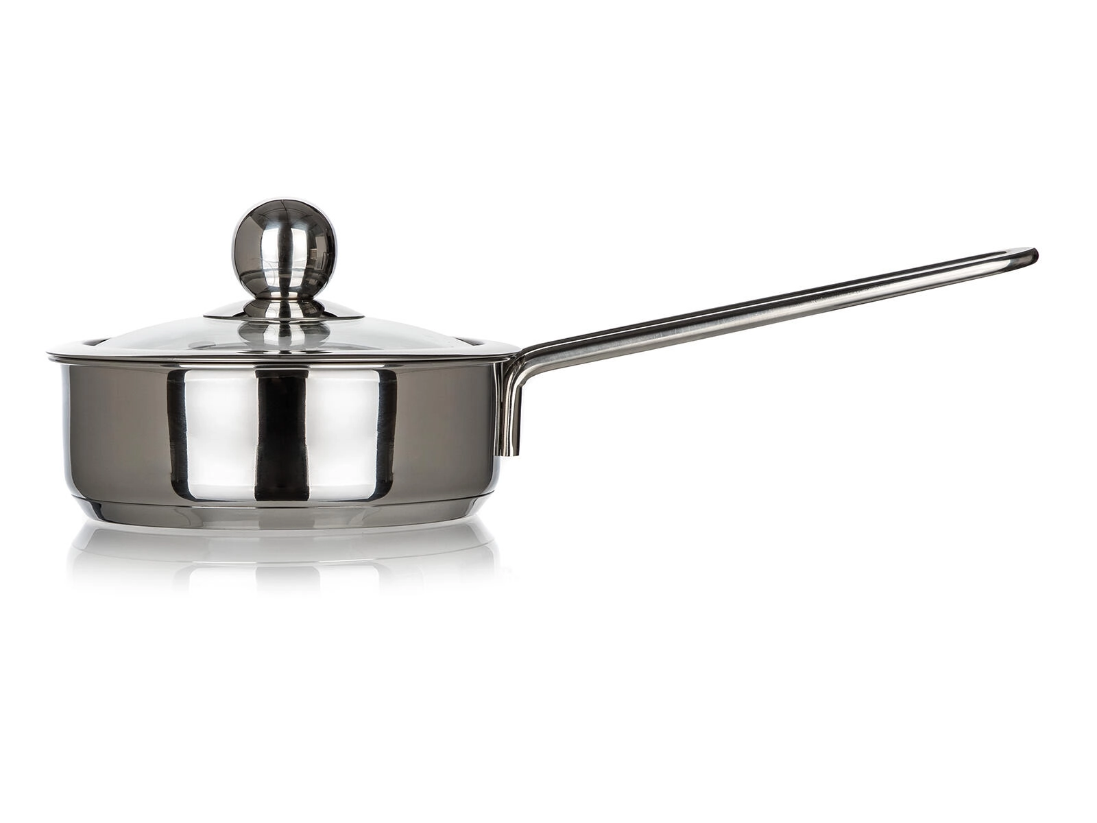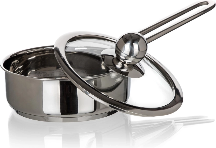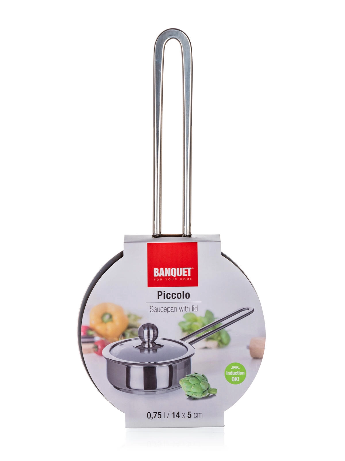 The practical PICCOLO saucepan made of polished 201 stainless steel offers quick heating and long-lasting durability. Thanks to its compact dimensions (14 × 5 cm), it’s perfect for preparing smaller portions, baby food, porridges, or sauces. The glass lid lets you check cooking without unnecessary heat and steam loss.