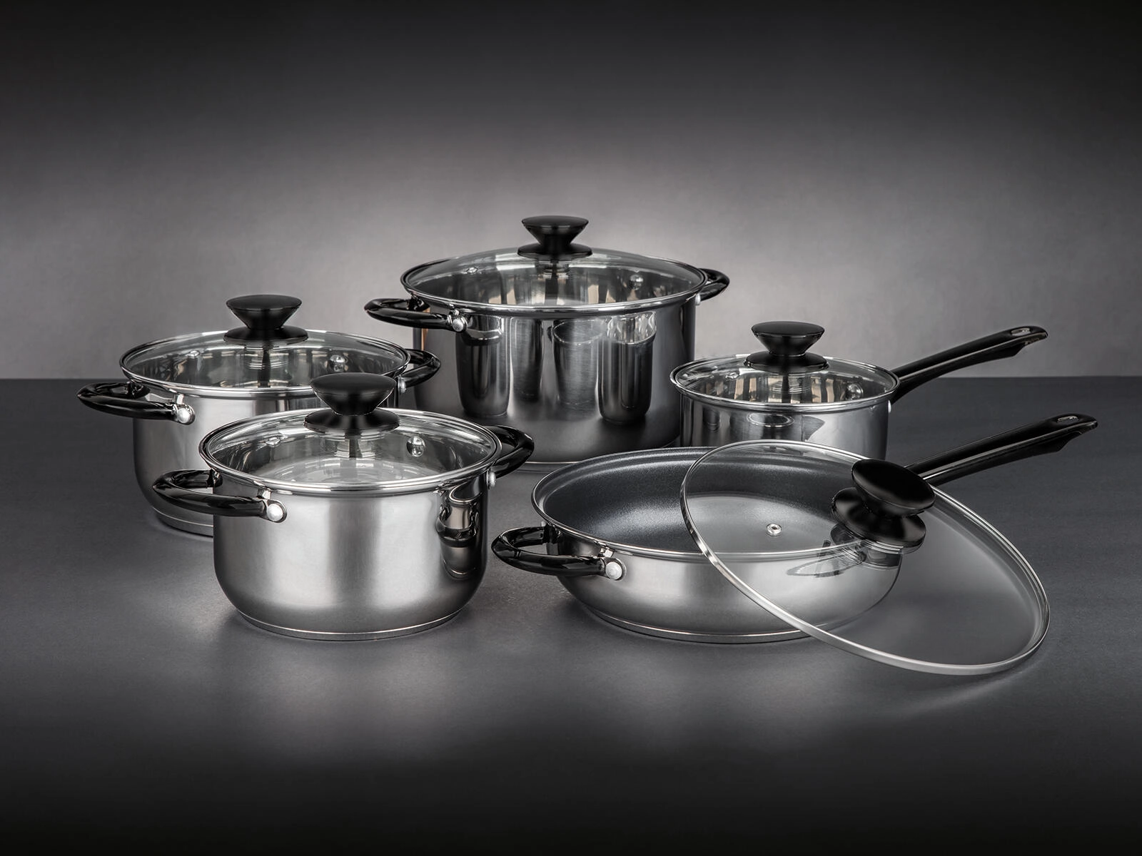 SWING Black Stainless Steel Cookware Set, 10-piece
