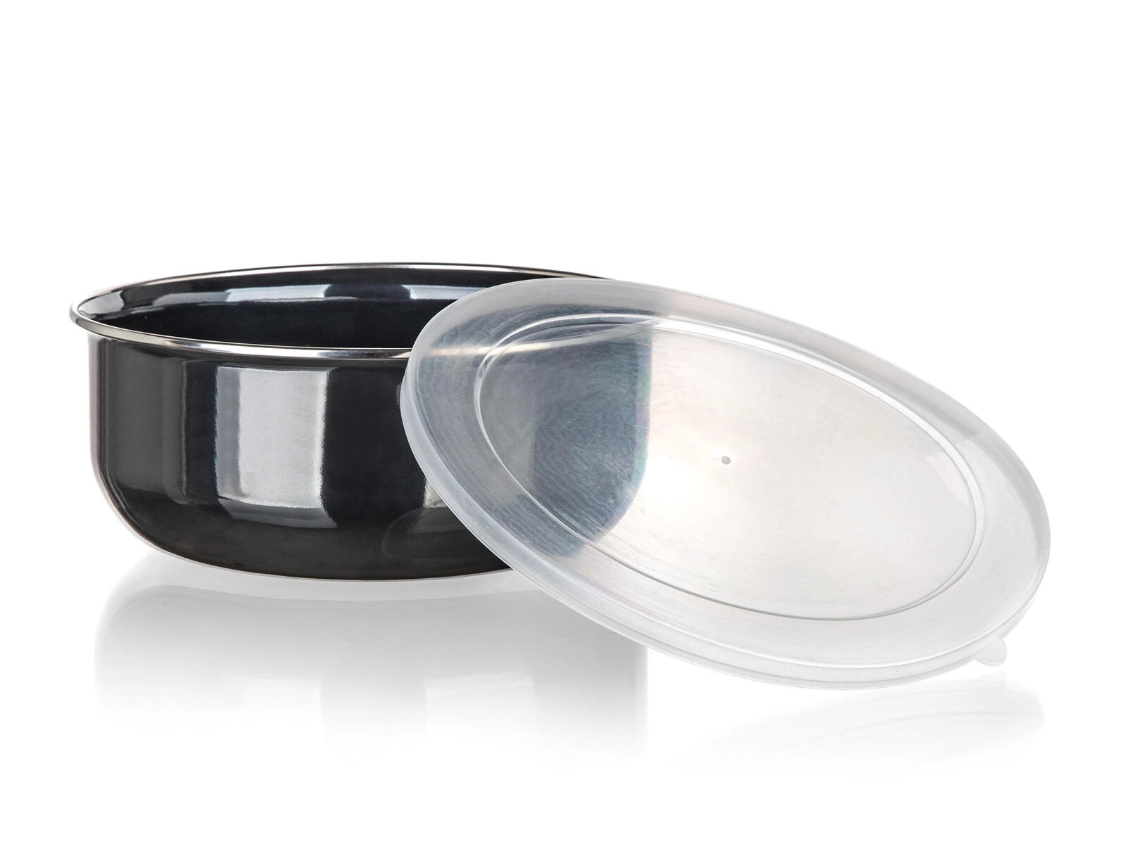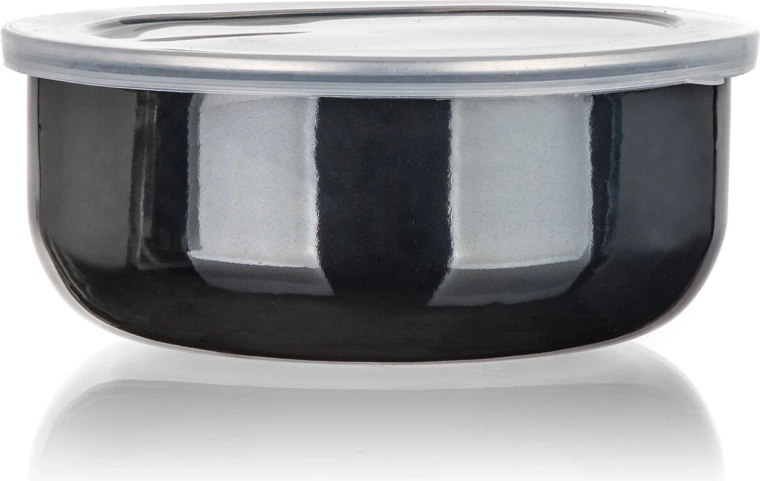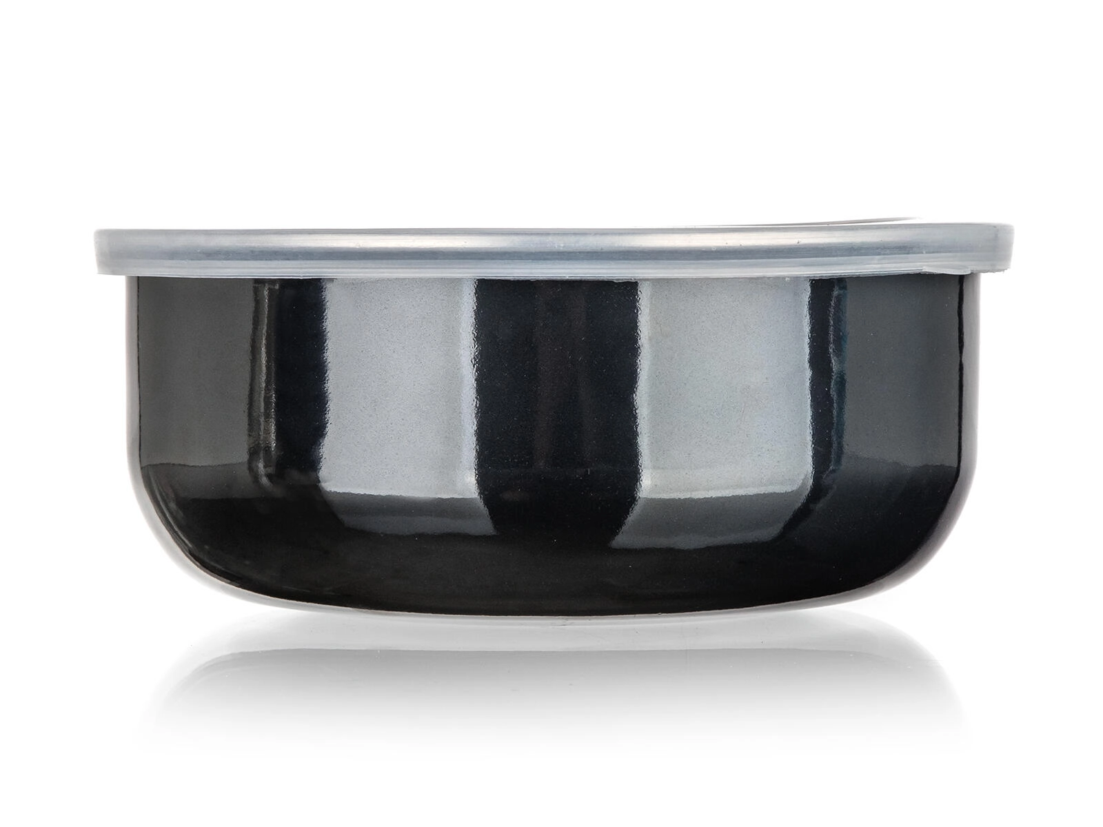 A practical set of enamel bowls with plastic lids METALIC Black in an elegant black color for everyday use. Four sizes with nesting design save space, sealing lids help keep food fresh longer, and durable enamel ensures easy maintenance. Ideal for food storage in the fridge and on the go.