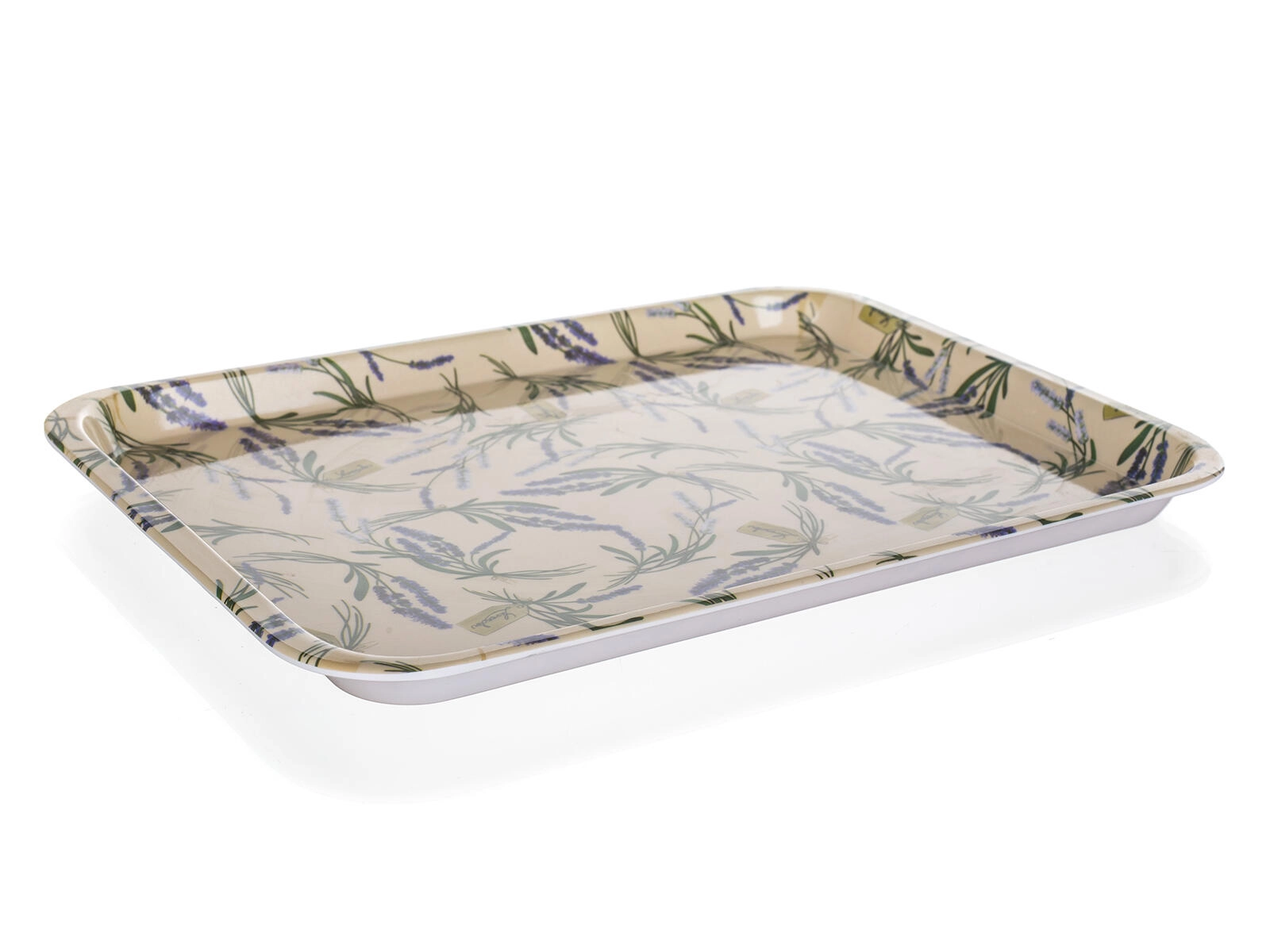 A stylish tray with a LAVENDER motif measuring 30 × 21.5 cm, made of durable melamine, makes serving drinks and dishes easier. It is lightweight, easy to handle, and can withstand rougher use. Not suitable for the dishwasher.