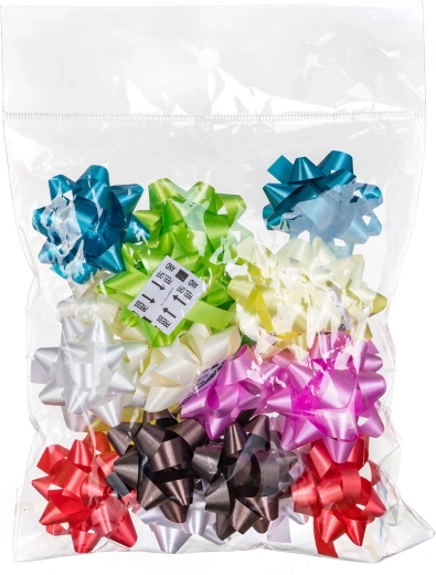 The practical pack contains 20 pcs of bows in assorted colors, easy to match with wrapping paper, boxes, or gift bags. The bows have a universal diameter of 5 cm, making them suitable for smaller to medium-sized packages.