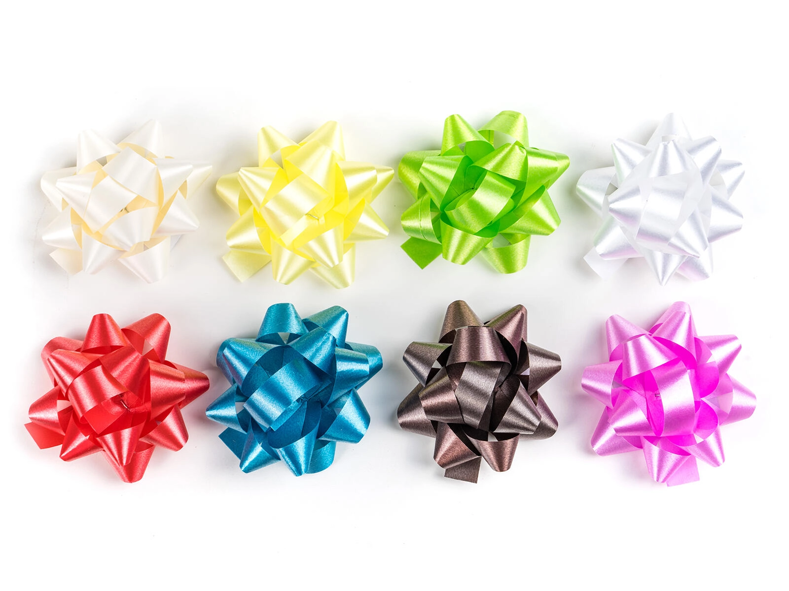 Dress up your gifts quickly and stylishly with these self-adhesive bows measuring 5 cm in diameter in a mix of vibrant colors. The pack includes 20 glossy bows that, thanks to the adhesive backing, attach easily and securely to any wrapping.