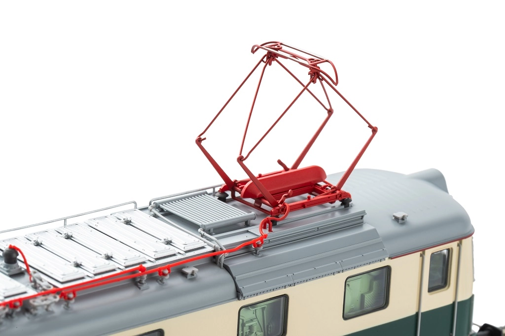 Two metal scissor pantographs and a richly equipped roof with insulators and ventilation underscore the model’s premium workmanship.