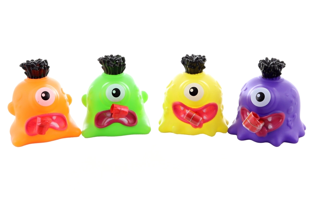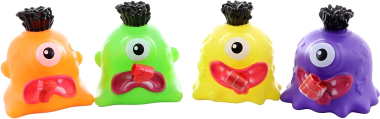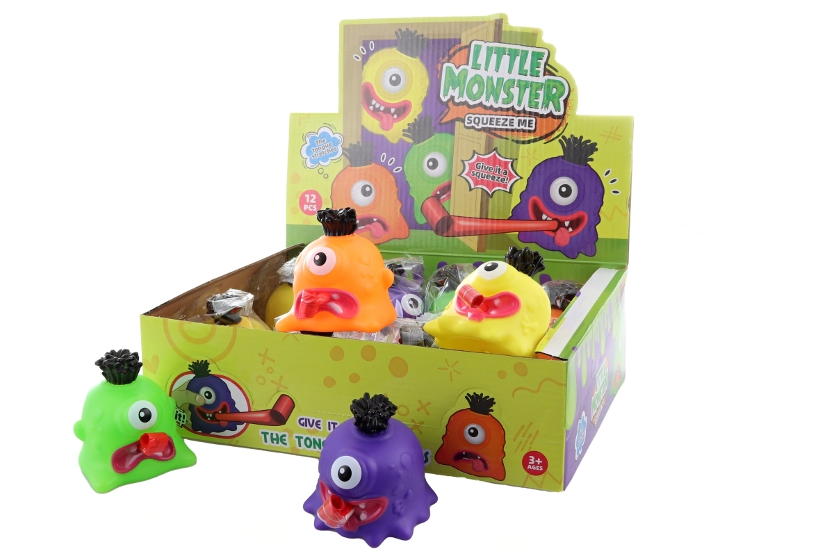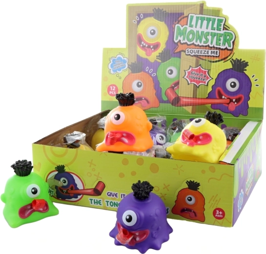 A fun squeezable monster made of soft plastic will delight children aged 3 and up. When squeezed, it sticks out its tongue and squeaks, encouraging play and laughter. Available in various colors depending on stock availability. Compact dimensions of 7 × 7 × 7 cm fit perfectly in a child’s hand.