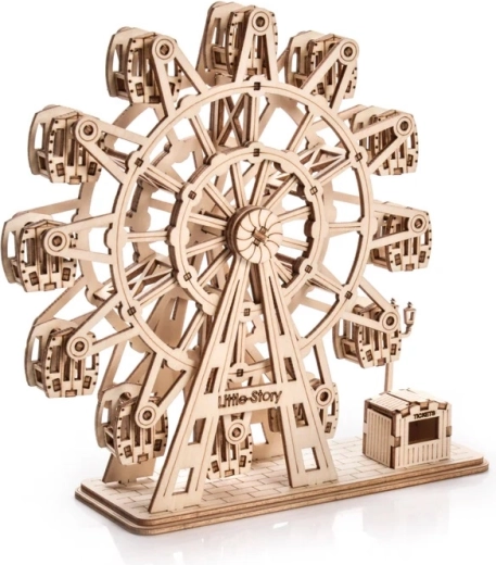 The Little Story Wooden 3D Puzzle Ferris Wheel is ideal for older children, teenagers, and adults who love creative crafting and a detailed modeling experience. Thanks to the well-thought-out design, you can assemble the model without glue; simply pop the pieces out of the sheet and connect them following the detailed instructions.