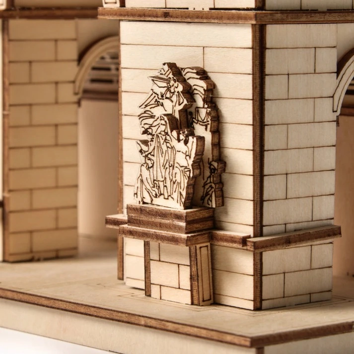 Discover the joy of building with the wooden 3D model of the Arc de Triomphe by Little Story. Precisely cut pieces from high-quality wood and plywood ensure durability, safety, and an elegant look. Assembly is glue-free, and thanks to the pre-numbered parts and detailed instructions, it’s smooth and satisfying. A great choice for architecture lovers, creative builders, and as a stylish interior decoration.