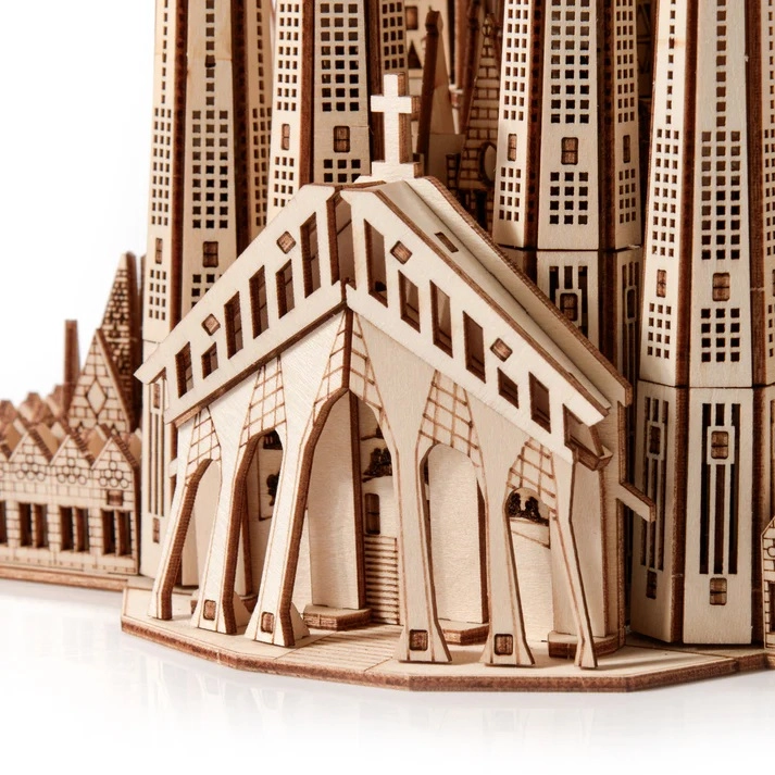 Discover the joy of making with the 3D wooden model of the Sagrada Família by Little Story. This designer puzzle made of quality wood and plywood offers 601 precisely cut and numbered pieces for glue-free assembly. Building it develops focus, patience and fine motor skills, and once completed it becomes an impressive decoration and an original gift for lovers of architecture and travel.