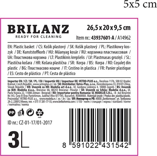 A practical plastic basket with a wicker-look design and a 3 L capacity, perfect for organizing small household items. Thanks to its compact dimensions of 26.5 × 20 × 9.5 cm, it fits on shelves and in drawers, and its cream color blends easily with your interior. The durable plastic ensures a long lifespan and easy maintenance.