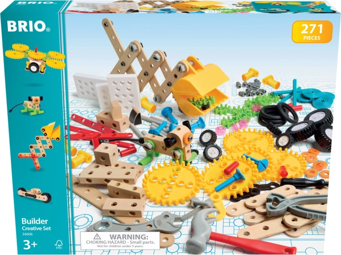 Build vehicles, animals, and clever mechanisms — all with a single BRIO Builder creative kit. It includes realistic tools (screwdriver, hammer, wrench), various connectors, gears, transmissions, wheels, and perforated beams for easy combinations. Kids practice logic, patience, and engineering thinking and watch their ideas come to life in motion.
