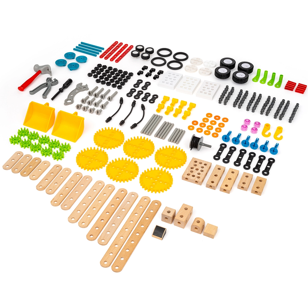 Gears, axles, and gear trains let kids build working mechanisms — from spinning wheels to simple transmission systems that set their creations in motion.