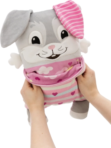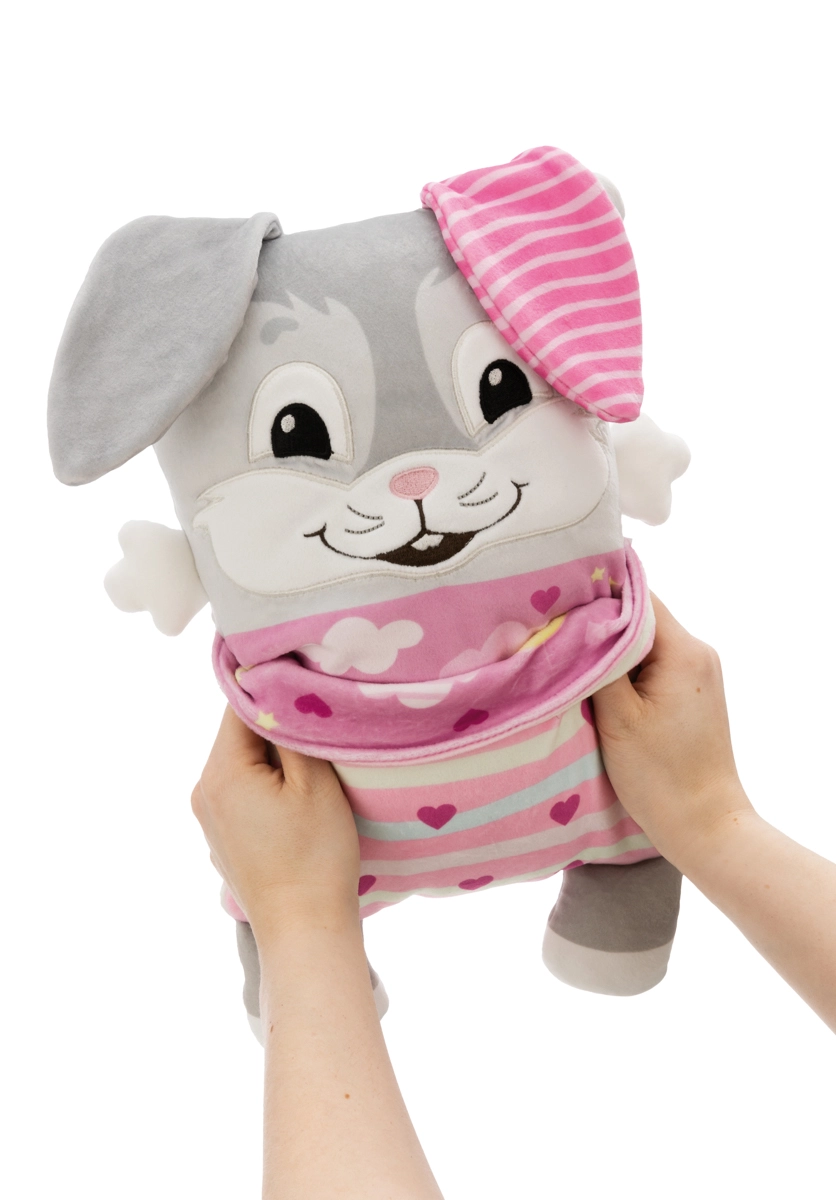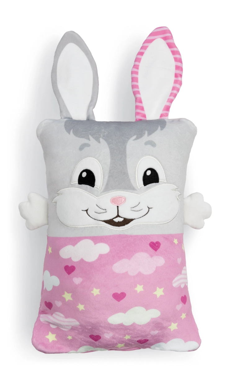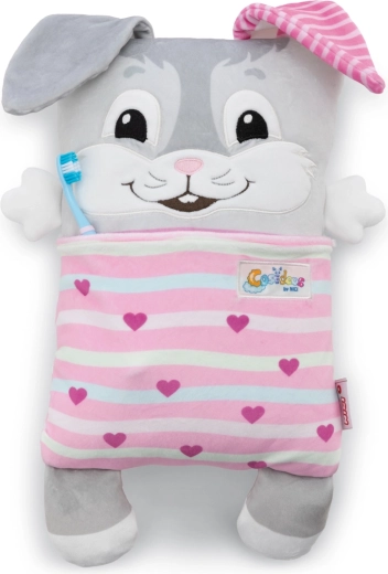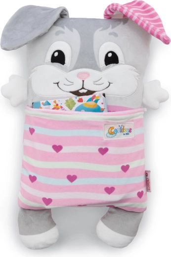The practical soft pockets are perfect for storing small items like tissues, a toothbrush, or small books. Thanks to its compact size of 30 × 20 cm, the bunny is great at home, in the crib, and on the go — a cuddly friend, pillow, and decoration in one.