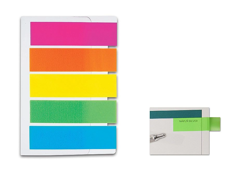 Practical CONCORDE neon sticky tabs for quick marking and organizing documents. The pack includes 5 vivid colors with 20 tabs each. The tabs are made of durable, writable plastic that is easy to remove without leaving residue. Thanks to the slim format 12 × 48 mm, they are perfect for highlighting text, sorting, and color coding.