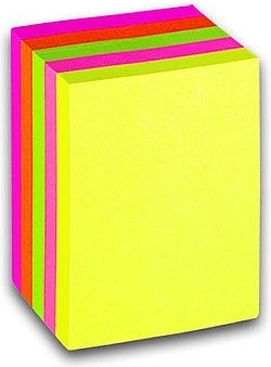 Practical neon self-adhesive CONCORDE notepad cube offers 5 vivid colors and a total of 300 sheets for quick notes. Thanks to the special adhesive, it sticks well even on vertical surfaces and leaves no residue. The sheets can be repositioned repeatedly without curling or losing adhesion.