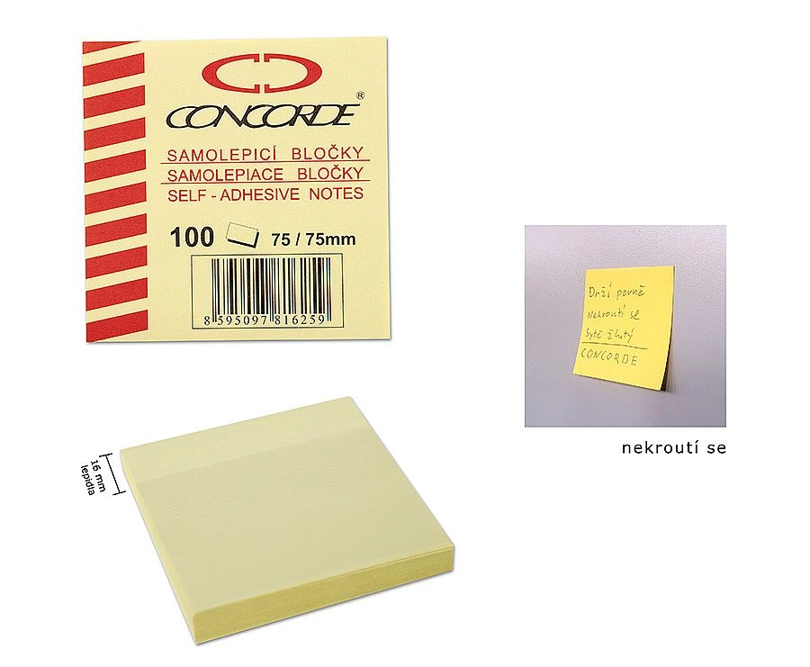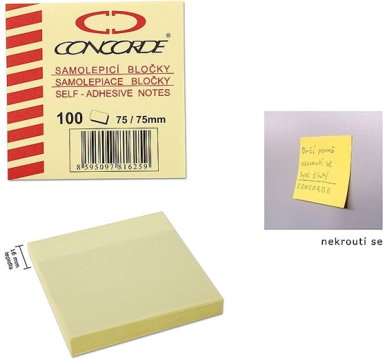 Self-adhesive notepad 75 × 75 mm, 100 sheets, yellow