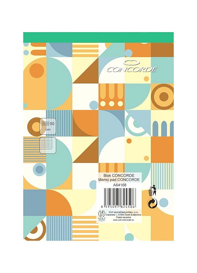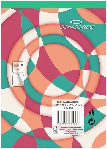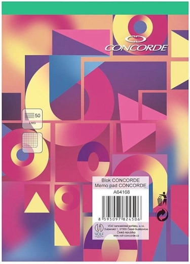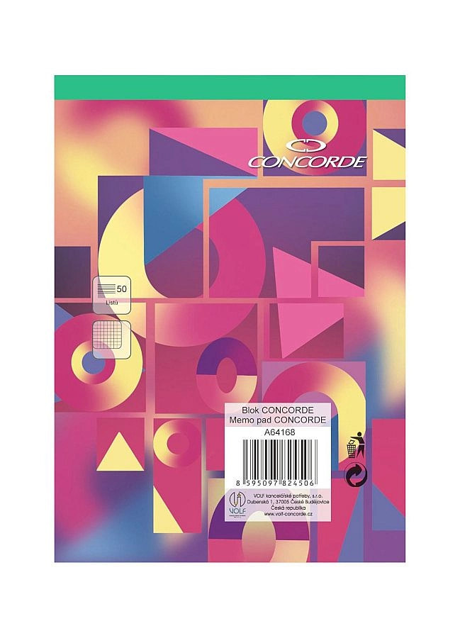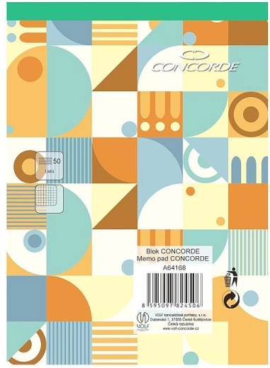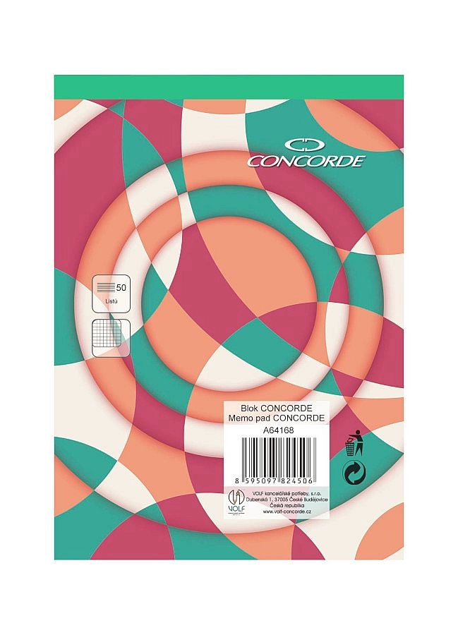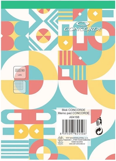 Practical CONCORDE A6 notepad with a grid pattern offering 50 sheets of white wood-free paper with a weight of 55 g/m². Glued binding and a green spine for easy identification of the grid type and convenient sheet tearing.