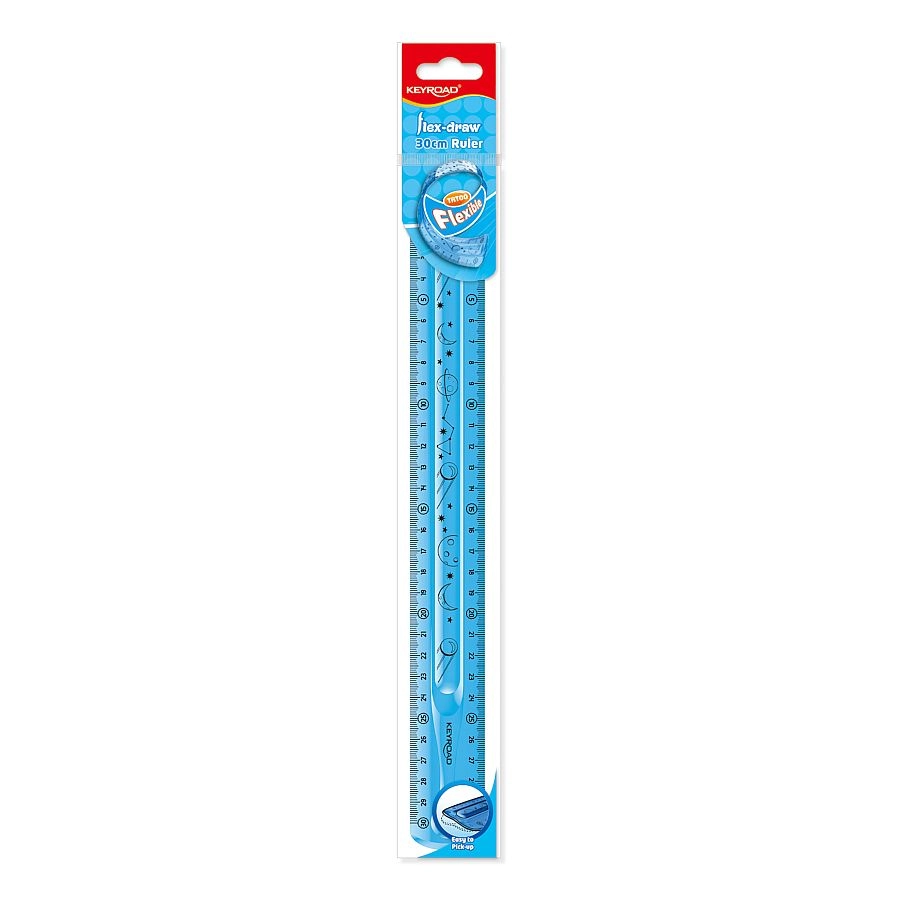 The flexible transparent KEYROAD Flexi ruler, 30 cm long, offers high mechanical durability, an attractive design, and is phthalate-free. Ideal for school, office, and home.