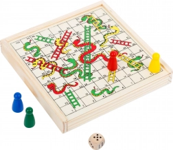 This Snake and Ladder board game offers fun for the whole family. The aim is to get from 1 to 100 and surprise your opponents. If you land on a snake, your journey is lengthened, while ladders bring you closer to the goal. The game is compact and all pieces are securely stored in its own box, which also serves as the game board.