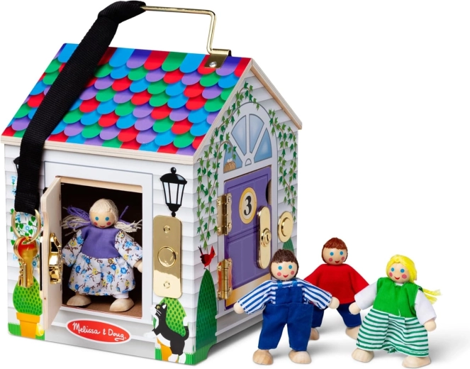 The sturdy wooden build by MELISSA & DOUG withstands everyday play. Thanks to the practical handle, the house is perfect for travel, too.