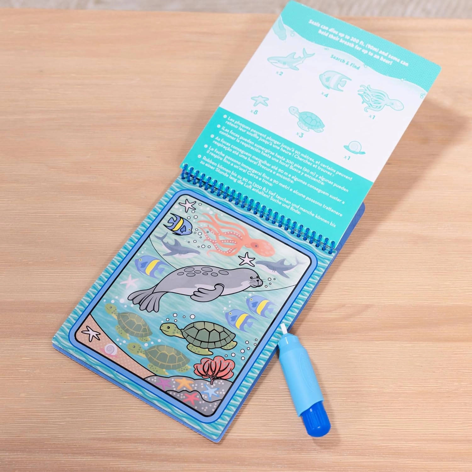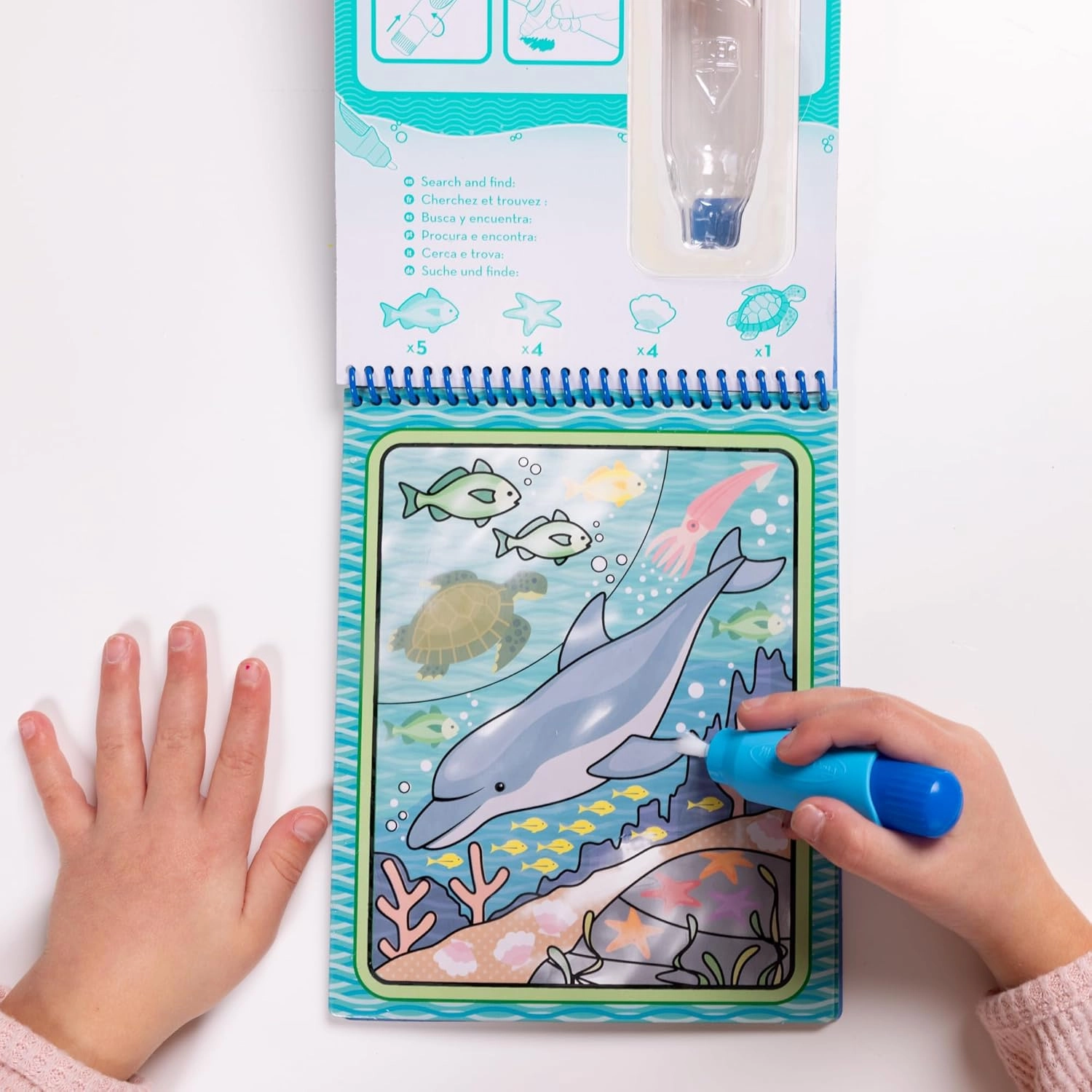 When the pages dry, the colors fade and they’re ready for another round of creativity and seek-and-find fun.