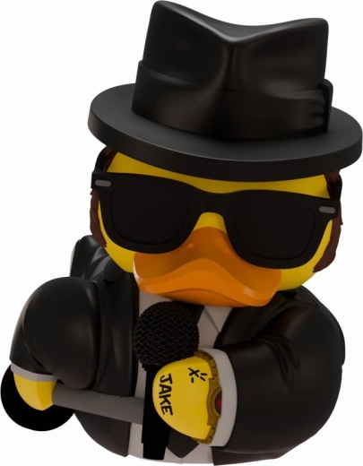 A stylish collectible TUBBZ vinyl duck inspired by Jake from the movie BLUES BROTHERS will delight every fan of this cult classic. It offers highly detailed craftsmanship of the iconic black suit, hat, and sunglasses, durable quality vinyl, and makes a great gift for collectors and movie enthusiasts alike.