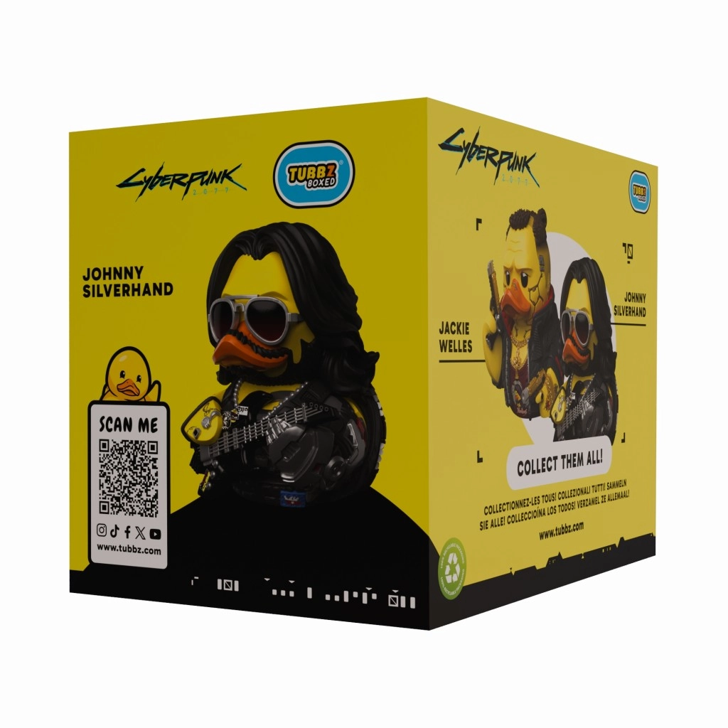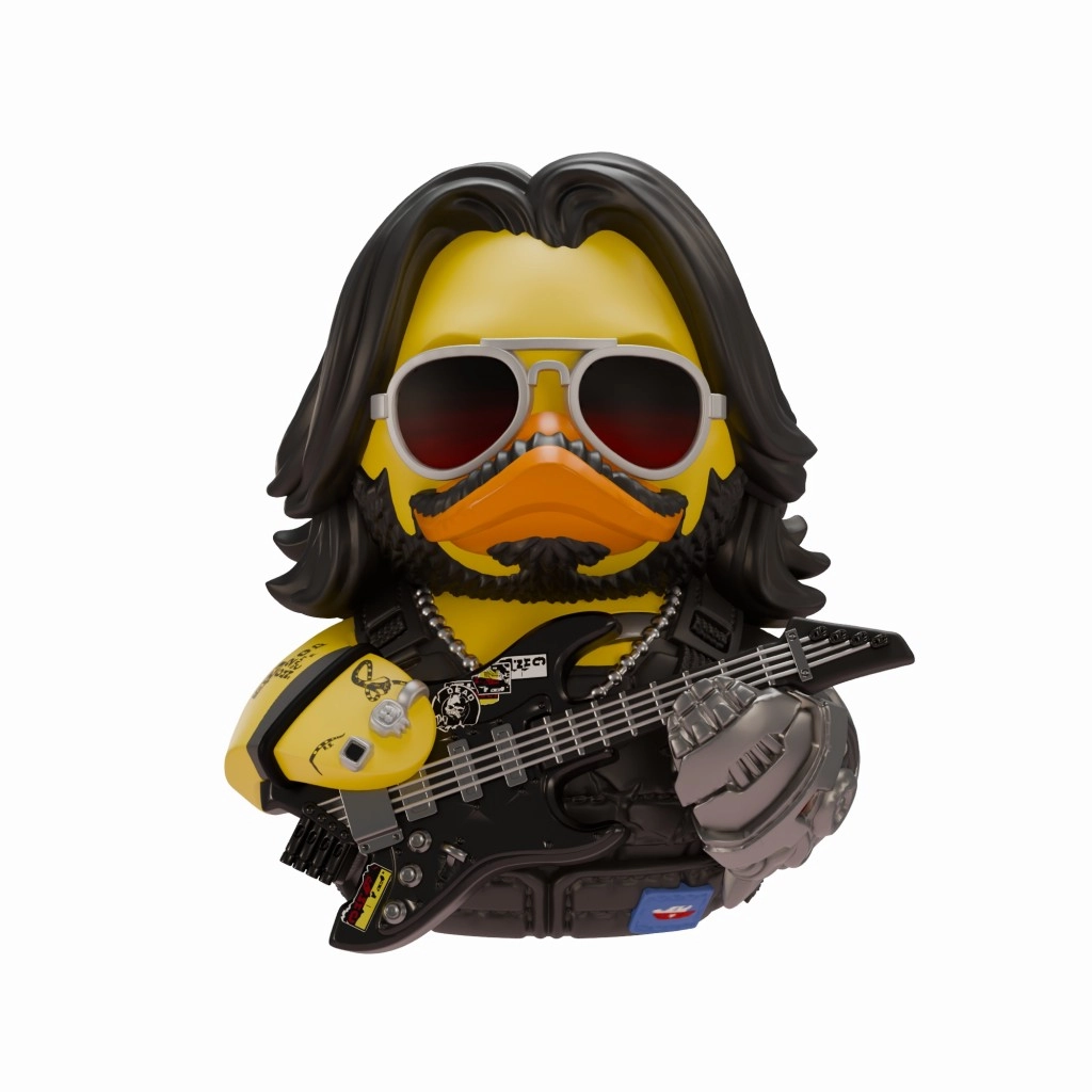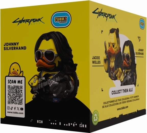 The legendary character Johnny Silverhand from the world of CYBERPUNK 2077 as a stylish collectible Tubbz duck. Precise details, a metal arm, iconic sunglasses, and an electric guitar give the figure a striking character. Made from durable plastic for long-lasting life – ideal as a decoration and a gift for fans.