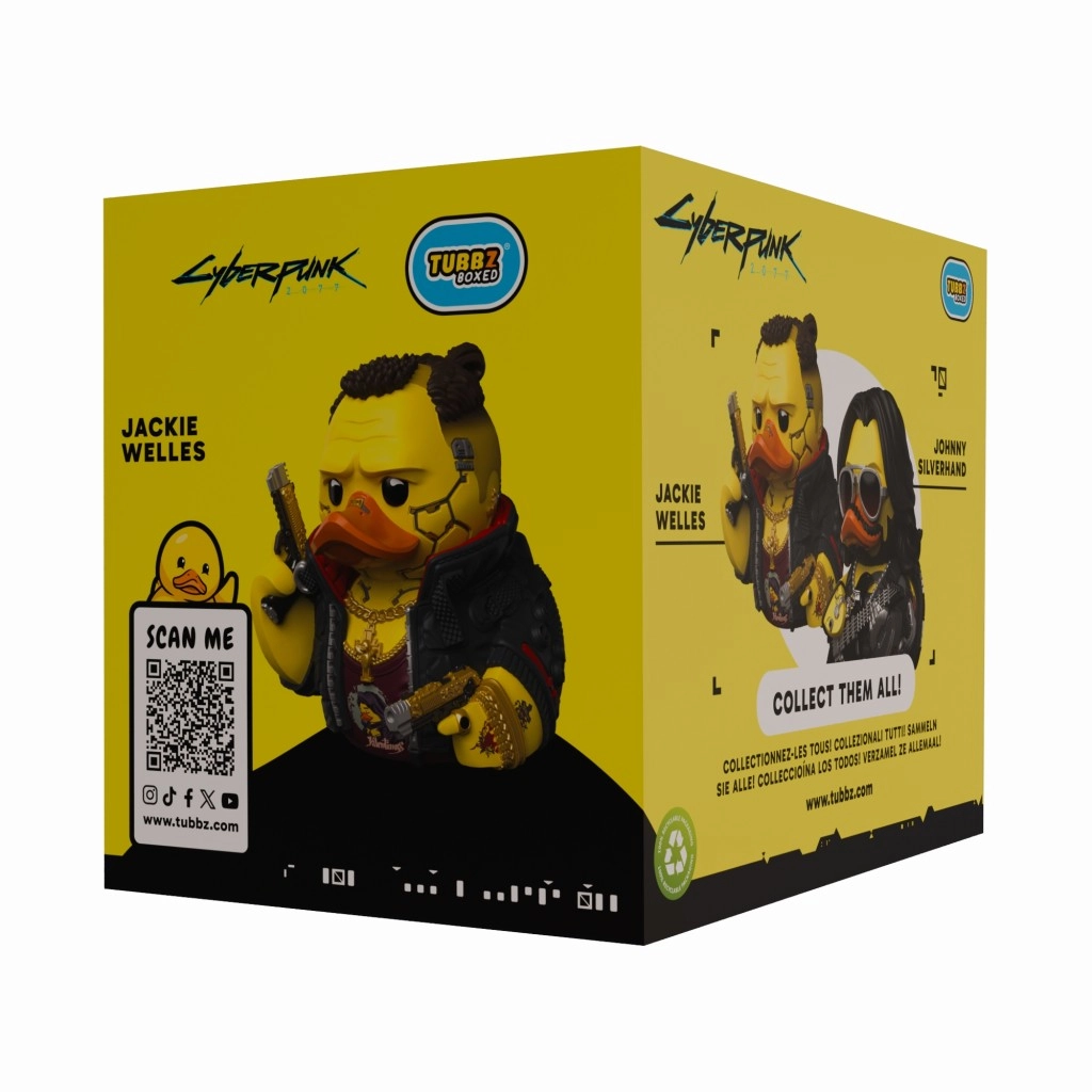 This officially licensed TUBBZ duck transforms the iconic Jackie Welles into a fun collectible. It stands out with precise outfit details, cyber elements, and accessories that faithfully reference the world of Cyberpunk 2077. Thanks to its compact size, it’s perfect for display at home or in the office.
