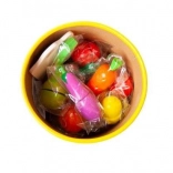 • In the box you’ll find: bucket with lid, safety knife, cutting board, broccoli, 2× orange, strawberry, tomato, pear, banana, lemon, eggplant, carrot, fish.