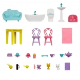 - Includes more than 20 accessories, such as a puppy and kitten, unique furniture, pet accessories, afternoon tea set, and more.