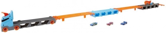 Feel the excitement of high-speed racing! Thanks to the lever at the end of the track, the first car can finish the race while the second is stopped. The Racing Transporter can be connected to other Hot Wheels City playsets (sold separately), allowing you to create your own racing route.