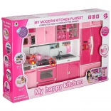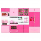 This modern doll kitchen brings children a world of imagination and everyday role play. Four connected segments let you assemble a complete kitchen with all the key elements—from a stove with oven to a fridge and sink. LED-lit burners and sounds give pretend cooking a realistic touch.