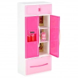 The set includes rich accessories: pots with lids, a pan, a toaster with a movable lever, dishes, mugs, cups, a “milk carton,” kitchen utensils on hooks, and “ice cubes.” Opening cabinets, a pull-out drawer, and shelves teach kids tidiness while developing fine motor skills and social abilities.